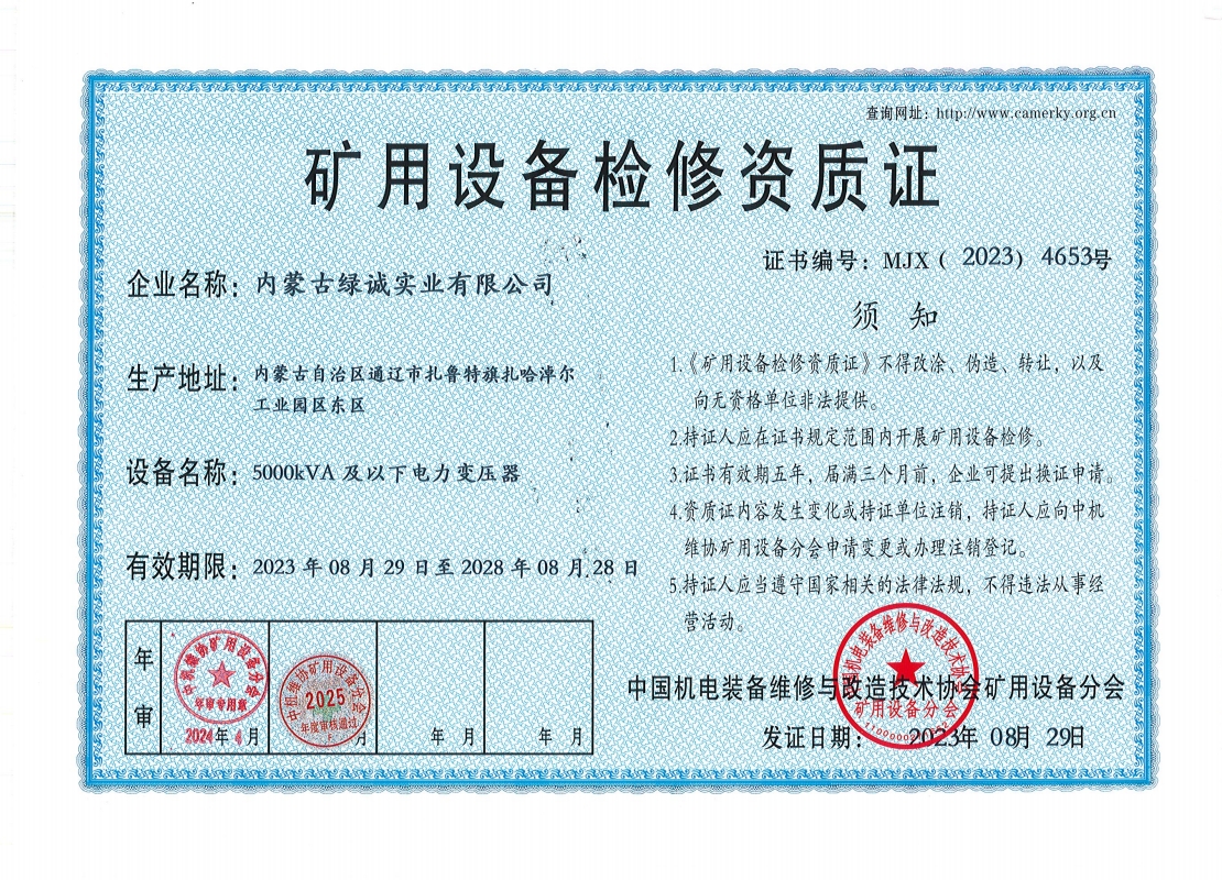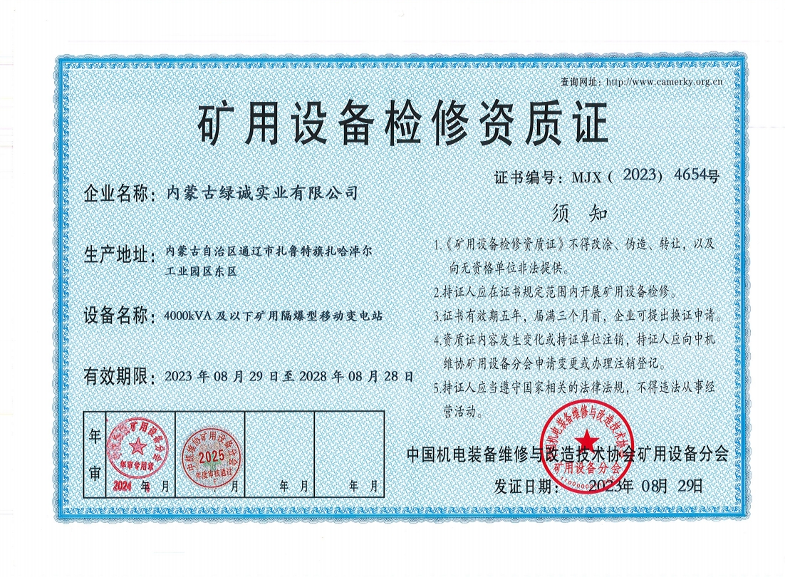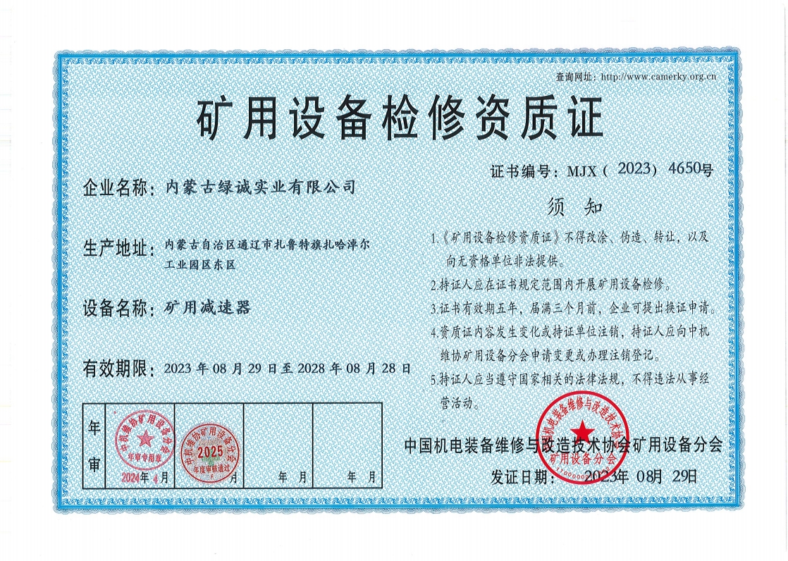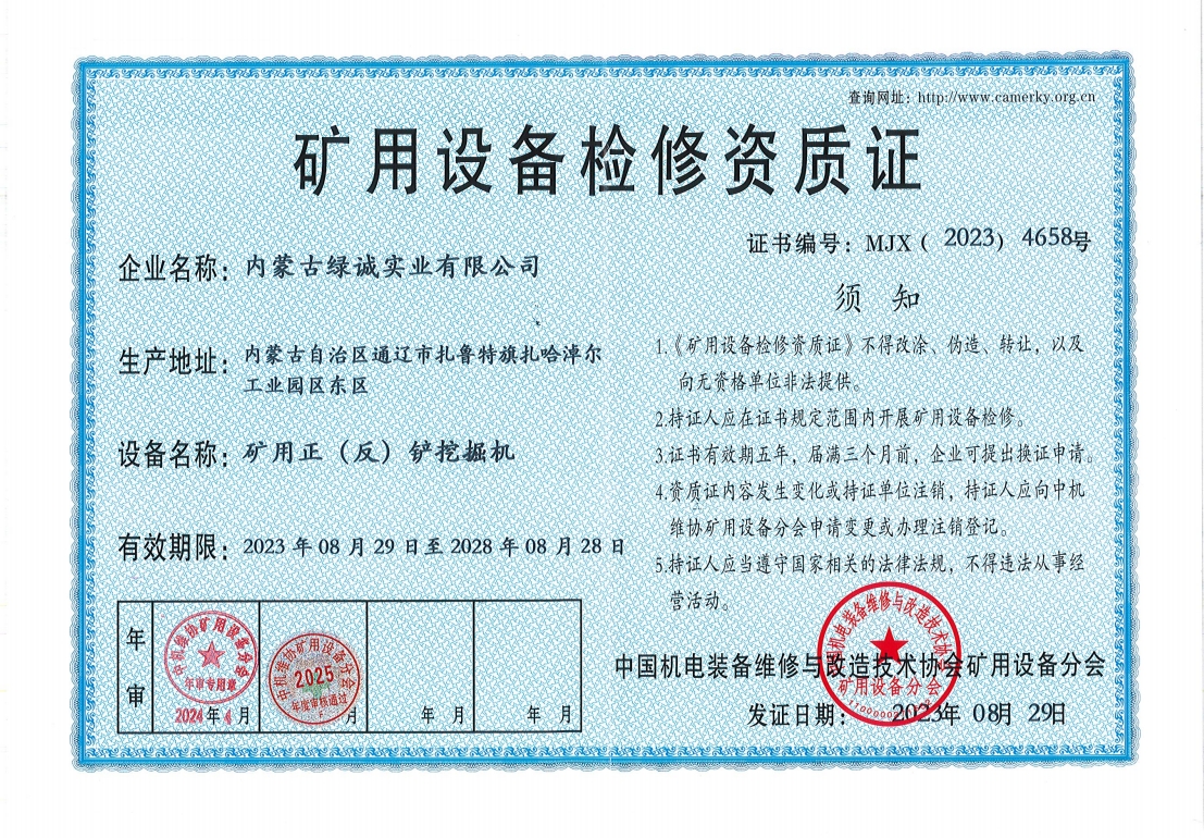 2018年我公司通過中國機電裝備維修與改造技術協會礦用設備分會審核并取得了9項礦用設備檢修資質證書。公司本著“誠信為本 質量為先 全心全意為客戶 ”的服務理念,圓滿完成各個廠礦的機械維修及配套服務,期待與您共同合作。