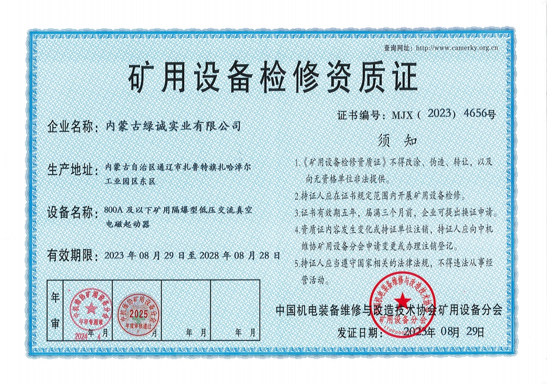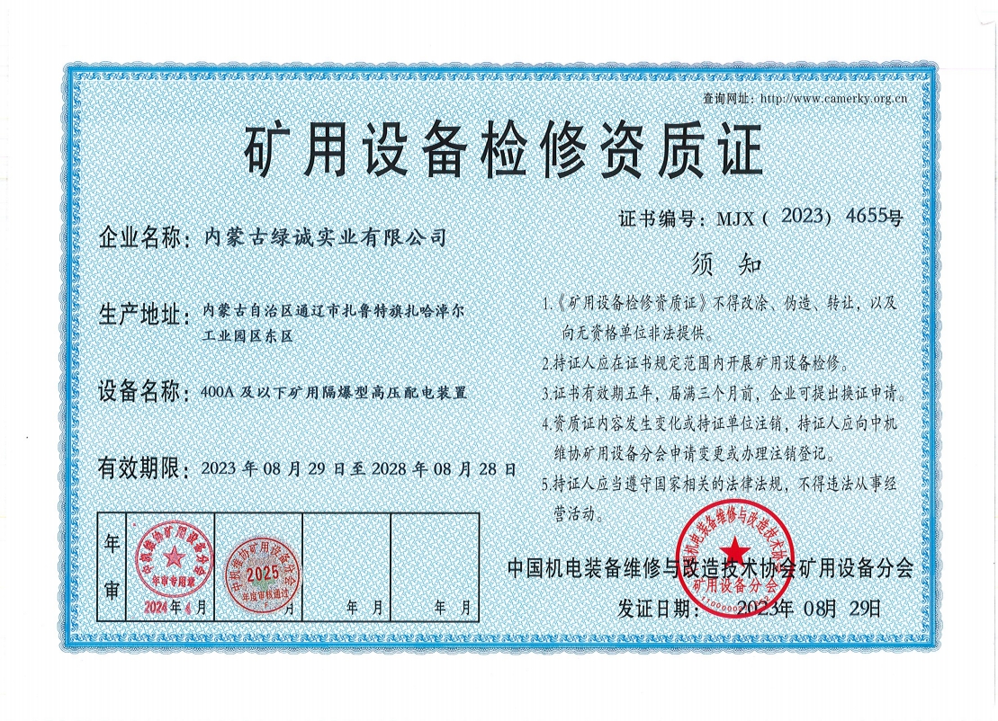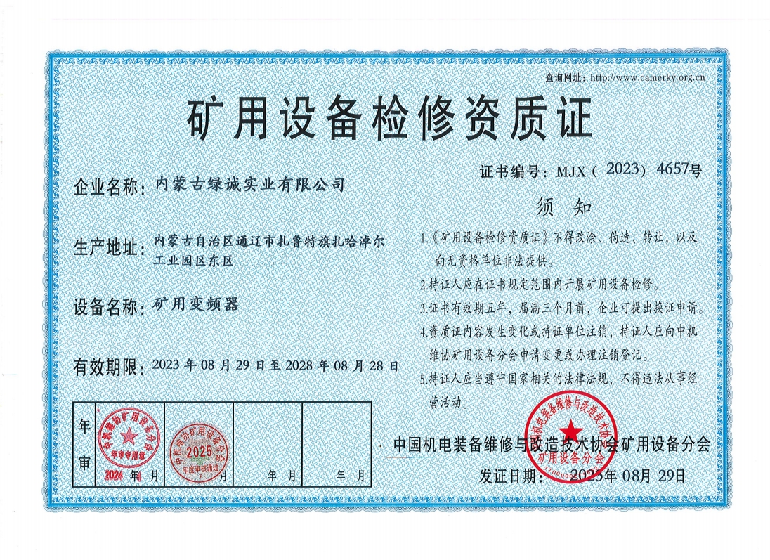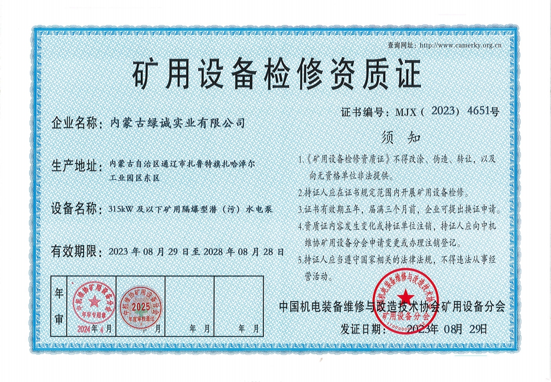 2018年我公司通過中國機電裝備維修與改造技術協會礦用設備分會審核并取得了9項礦用設備檢修資質證書。公司本著“誠信為本 質量為先 全心全意為客戶 ”的服務理念,圓滿完成各個廠礦的機械維修及配套服務,期待與您共同合作。